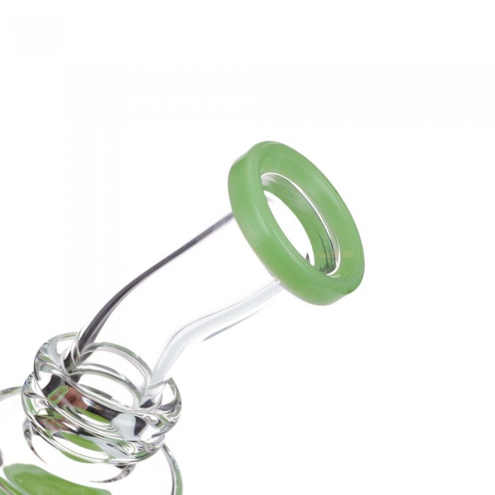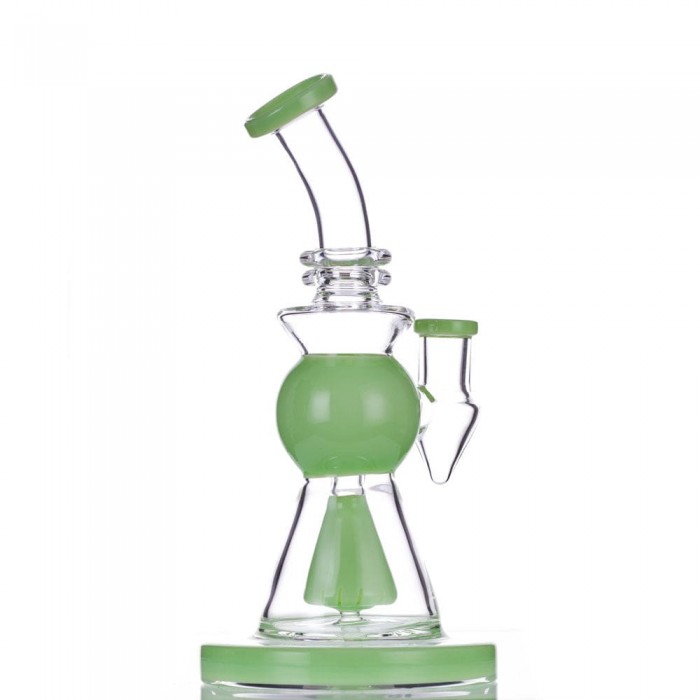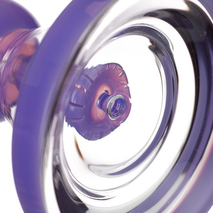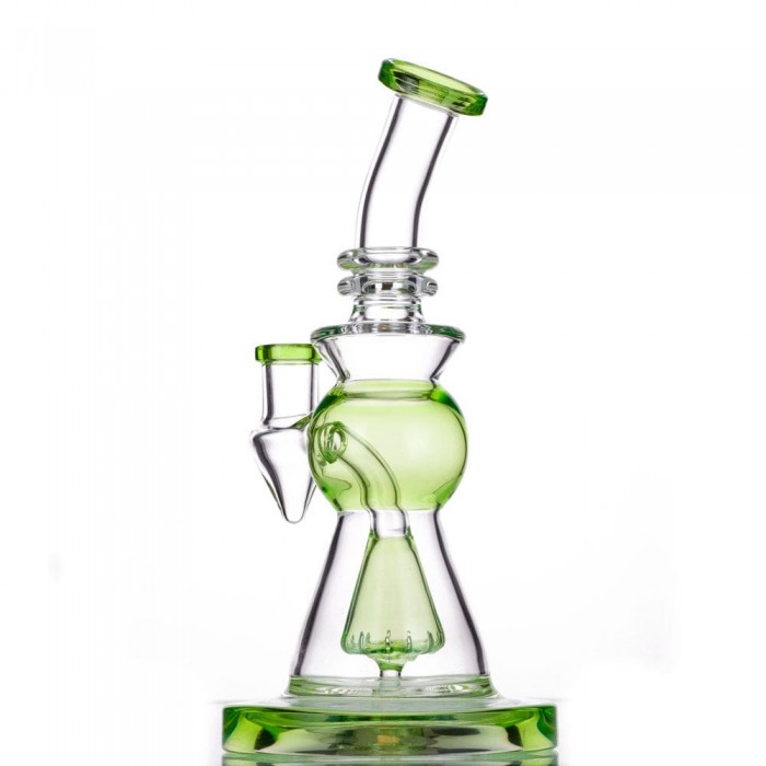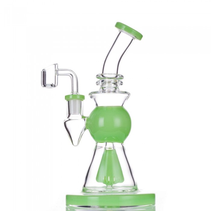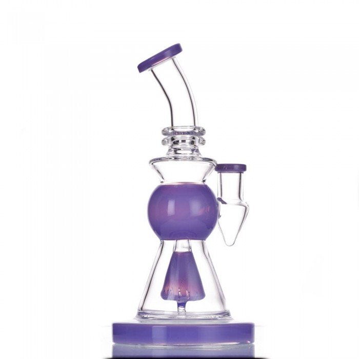 Take a look at this 8.5 inch slitted showerhead dab rig! This piece is made from glass and features a built-in reclaim catcher under the 14mm joint. This allows for your reclaimed wax to collect in one spot for easy cleaning! Color at random.