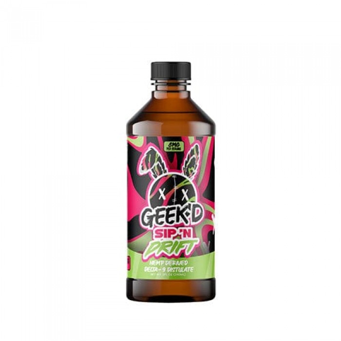 Sip 'N Drift 800mg Delta 9 Syrup - Geek'd Extracts*This Product Ships Via USPS If your Order Contains Only Other Non-Vape Related Products*Experience the exceptional potency of Sip'N Drift Syrup, filled with 800mg of premium hemp-derived Delta 9 distillate. Indulge in the delightful array of four de..